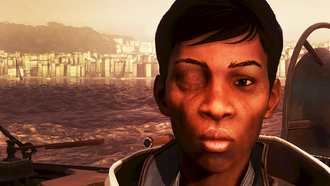 To create these portraits I used Ansel, Nvidia’s new screenshot tool. If you have a supported GPU you can access it by pressing ALT+F2 in-game. Sometimes you get a black screen, but restarting the game seems to fix it. And it’s only when I started zooming in with this that I realised just how obscenely detailed the faces in the game are. The realistic skin shaders lend the exaggerated features a tangible texture, but it doesn’t send them tumbling into the uncanny valley. These characters will still look great in ten years, because Arkane understands that strong art always trumps photorealism.